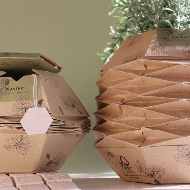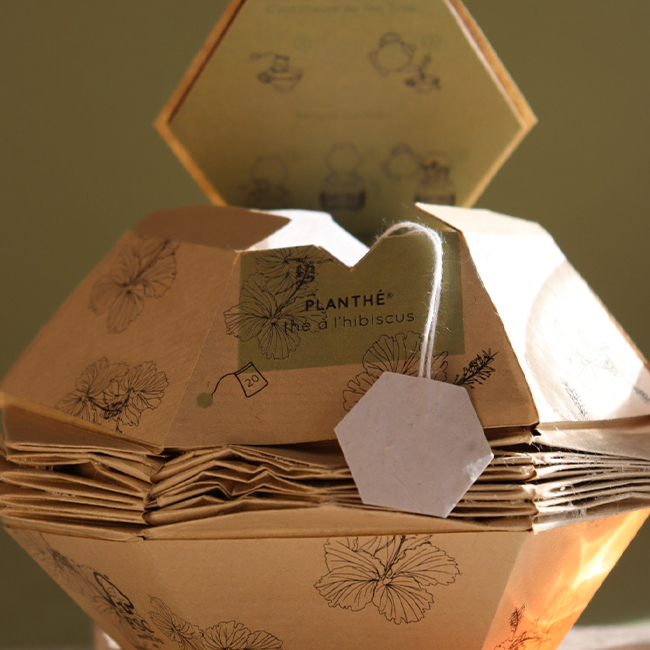Ce projet avait pour objectif de questionner la problématique suivante : comment concevoir un packaging durable et éco-conçu en favorisant l’upcycling face à l’absence de réutilisation dans l’industrie du conditionnement ? Ce packaging a donc pour objectif d'être entièrement réutilisable, que ce soit l'emballage primaire, en passant par les sachets de thé et leurs étiquettes.